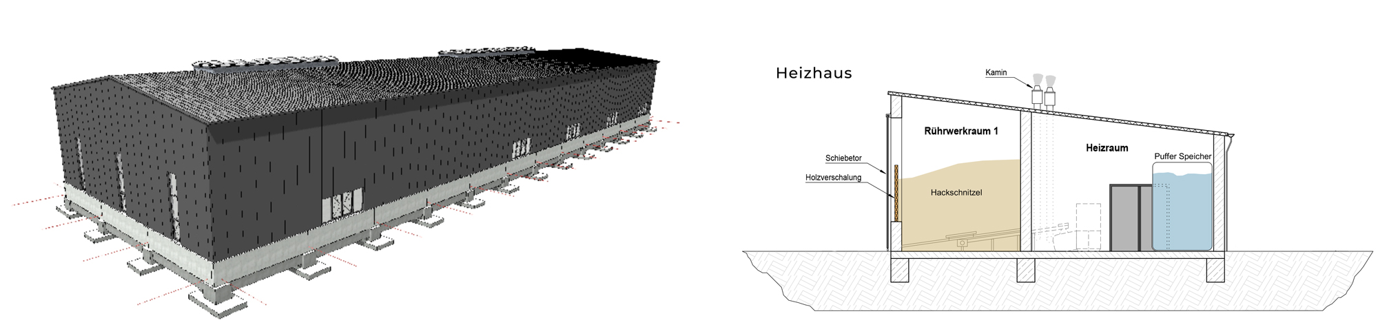 Basierend auf diesen Erkenntnissen entwickeln wir für Sie unterschiedliche Versorgungskonzepte. Dabei berücksichtigen wir erneuerbare Energien wie beispielsweise Hackgut oder Wärmepumpen, um nachhaltige und ressourcenschonende Lösungen zu integrieren.